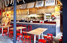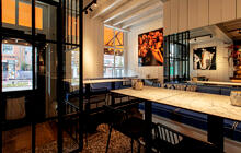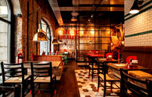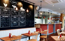 A restaurant that serves mostly burgers, fries, and milkshakes, but also doubles as a cafe during the day, and has a very healthy breakfast menu. Has plenty of vegetarian/vegan options.