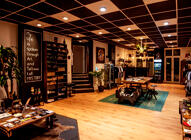 Event hall and bar. JollyBolly serves coffee and tea and breakfast in the morning, alcoholic drinks and
